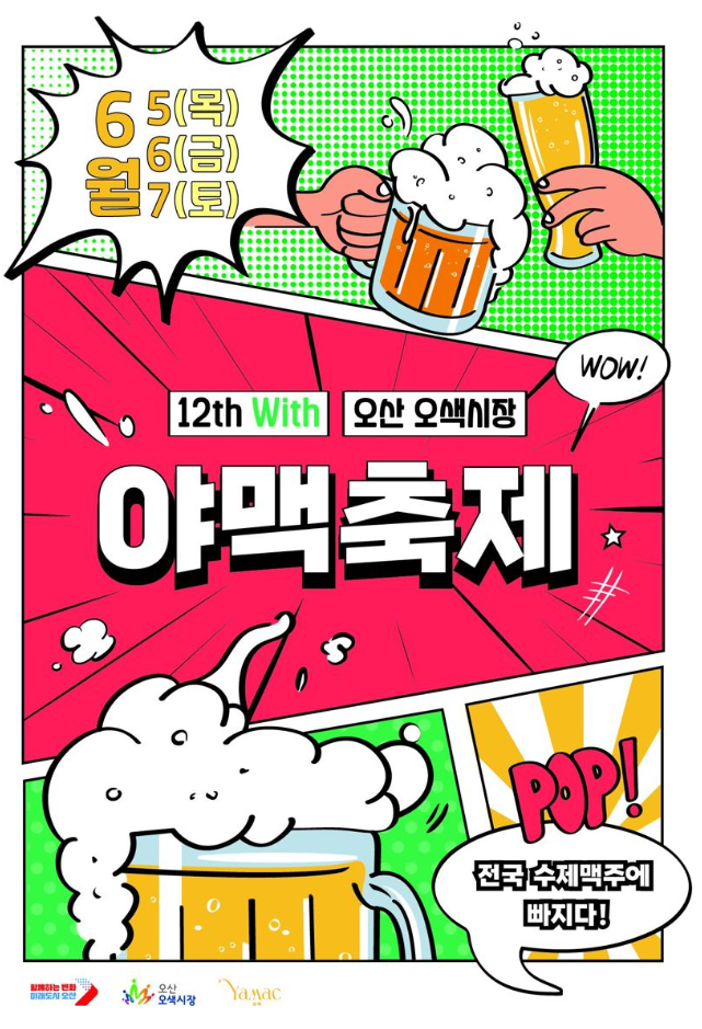 경기도 오산시에서 6월 5일부터 7일까지 3일간 오색시장 일대에서 전국 최대 규모 맥주축제인 '야맥축제'를 개최합니다.