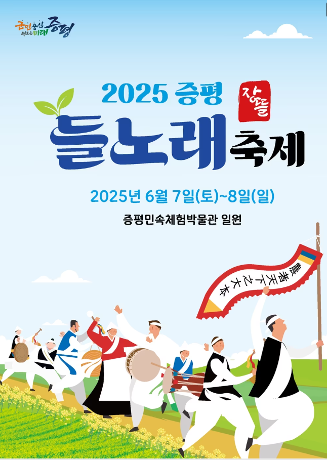 전통 농경문화의 흥과 멋을 한껏 느낄 수 있는 '2025 증평들노래축제'가 6월 7~8일 증평민속체험박물관 일원에서 성대하게 열린다고 합니다. 이번 축제에서는 장뜰두레농요 시연뿐만 아니라 관람객이 직접 참여햐는 프로그램도 풍성하게 준비해 체험형 농경축제의 면모를 살릴예정입니다.