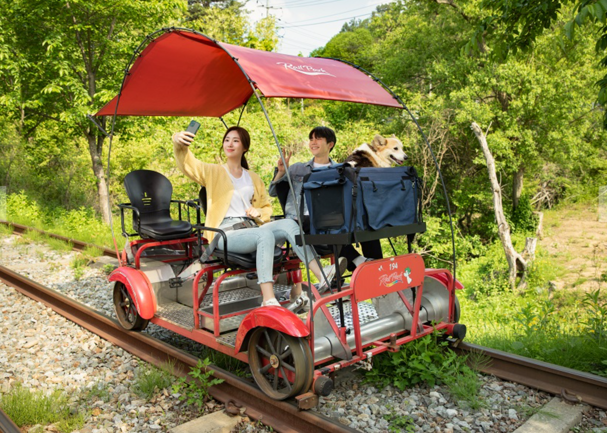 - 펫바이크 : 추가 10,000원 (PET BIKE는 4인승 레일바이크에 반려견 전용 탑승석이 설치됨)