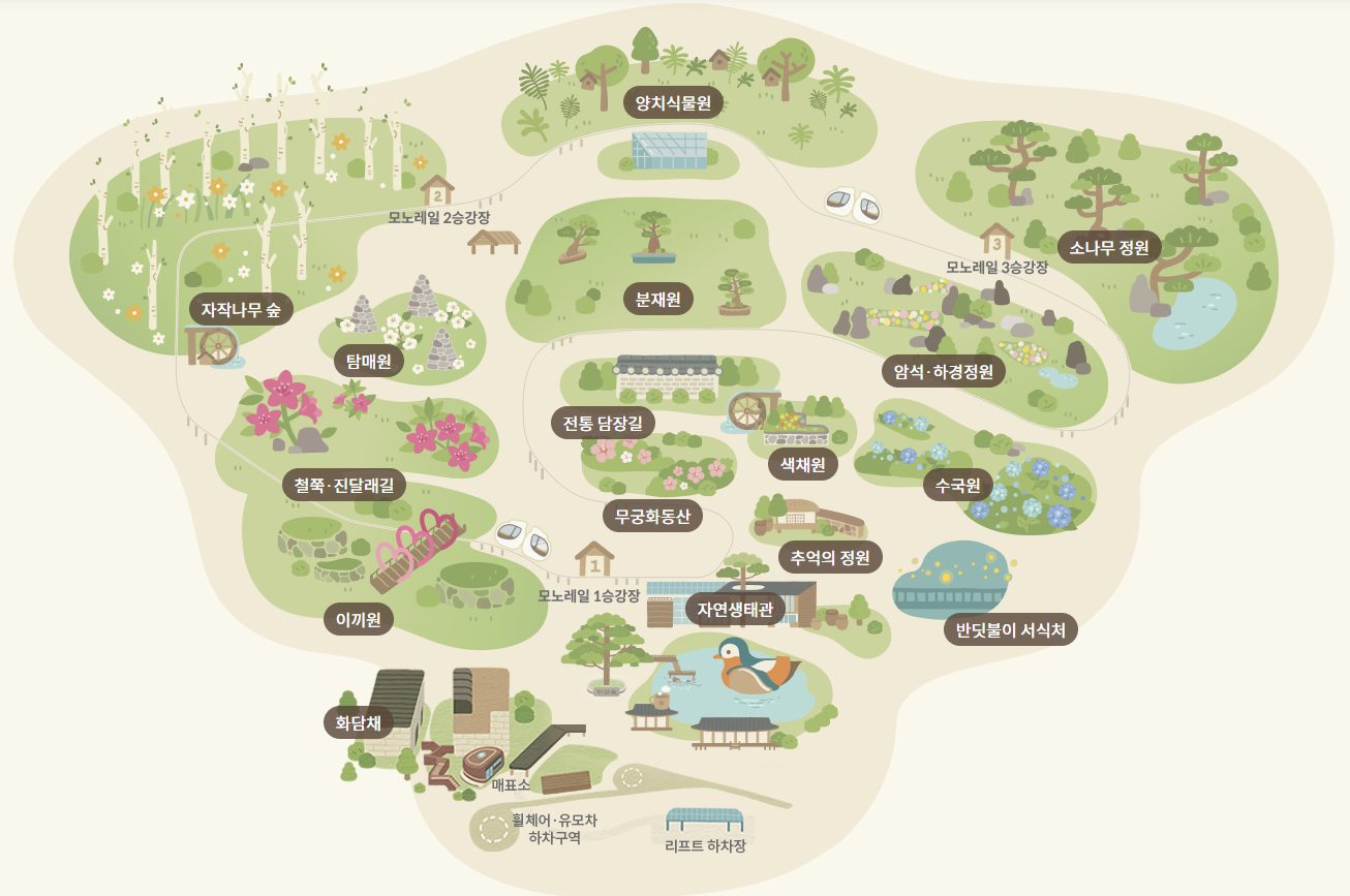 - 화담숲은 유모차나 휠체어를 타고 전테마원을 관람할 수 있도록 조성되어 있습니다.(조금 힘들수 있음 주의)